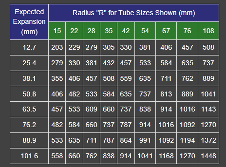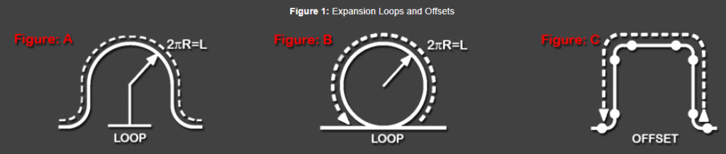 Thermal Contraction and expansion in pipelines should be allowed for by expansion loops or bends, the dimensions and spacing of which should preferably be such that combined stresses are kept below the fatigue limit.