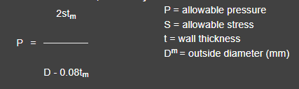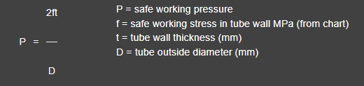 Having established the safe working stress at a given temperature the safe working pressure for a tube of specific dimensions can be calculated from the following formula: