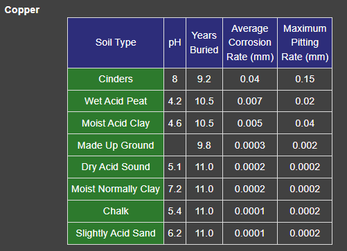 In an attempt to categorise the nature and extent of the corrosion of copper pipe underground, studies by both the National Bureau of Standards in the States and the BNF Metal Research in the UK Classified the soils according to type.