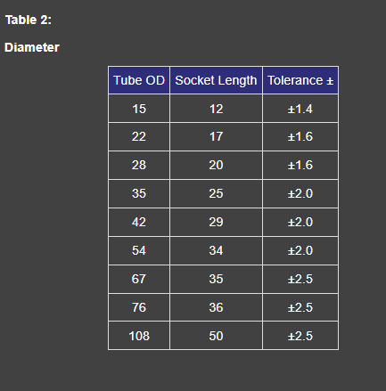 Good practice dictates whenever possible the completed system should be fully pressure tested before being closed up. Always flush the system as soon as possible after completion to remove flux residues from inside the pipes. The recommended use of water soluble fluxes such as Maksal Everflux will assist in the ease of the operation. If a system is to be inoperative for any extended period after installation, it is recommended that it be completely drained after testing and flushing and left empty of water. Capillary fittings with short sockets should not be used for soft soldering. Standards laid down by SABS 1067, Part 11 and equivalent to international standards are as follows: